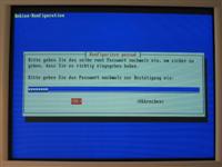 Weiterhin sind als nächstes Passwörter für den Benutzer: 'root' auf dem System einzugeben. Danach kann ein normaler Benutzer definiert werden, der dann auch mit einem Passwort versehen werden muss.